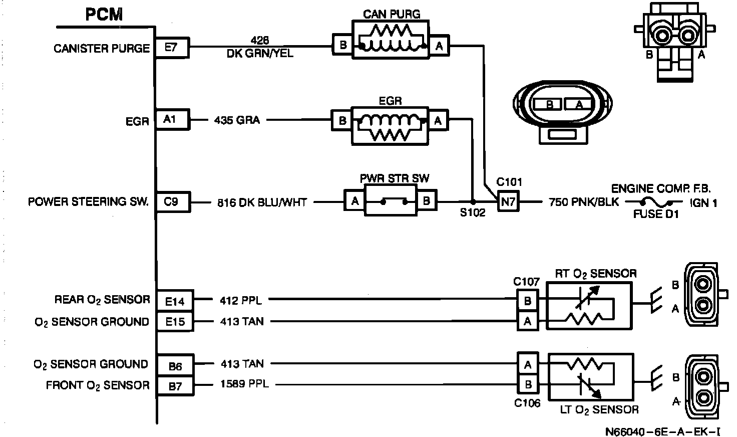 This test detects the open and close of the power steering switch located on the steering gear at terminal C9 of the PCM.