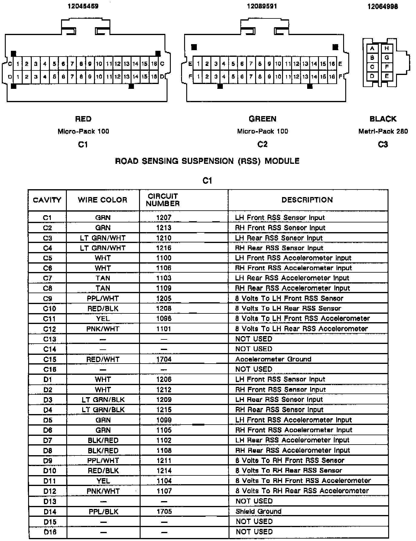 Harness Connector Faces: Road Sensing Suspension (RSS) Module Part 1 Of 2:
