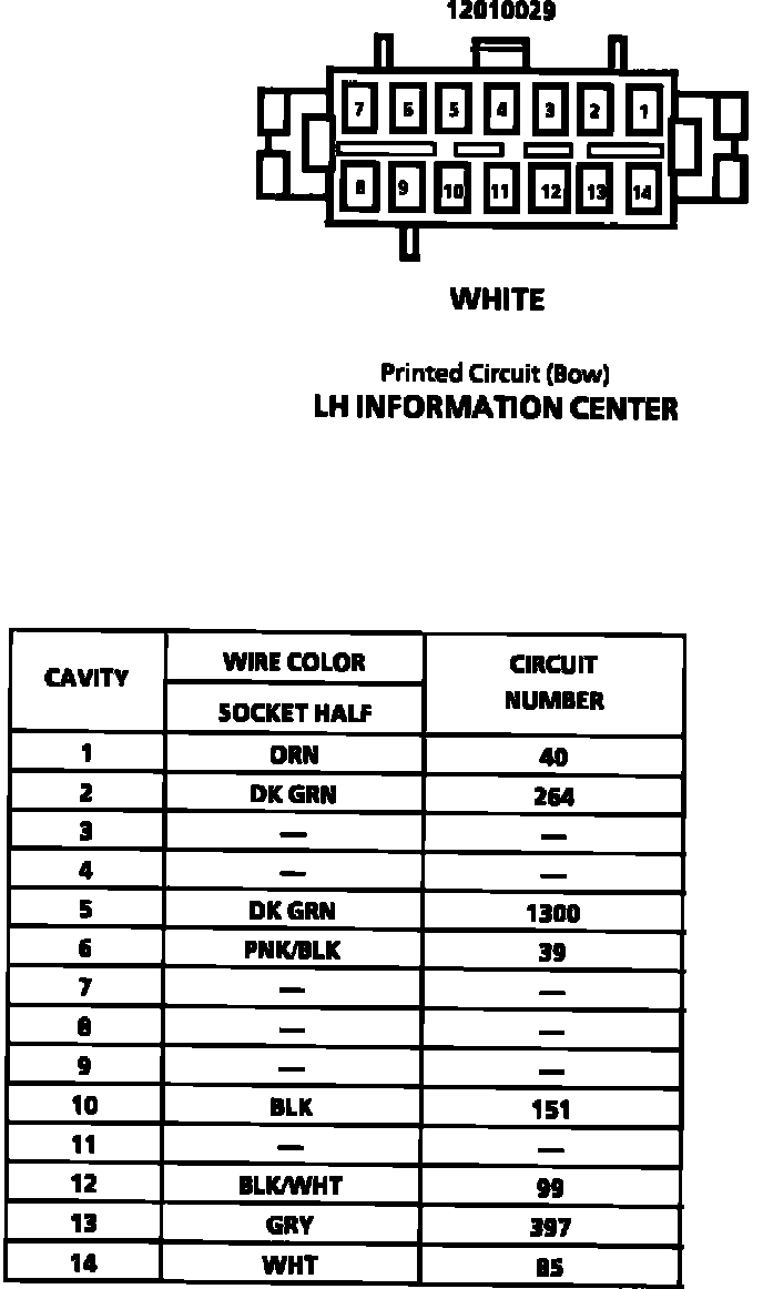LH Information Center Connector Face: