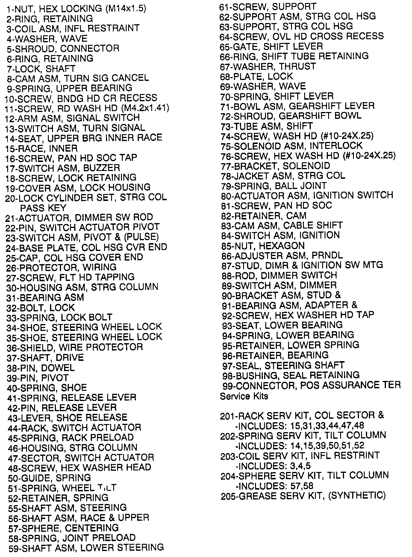 Tilt Column Components (With Column Shift):
