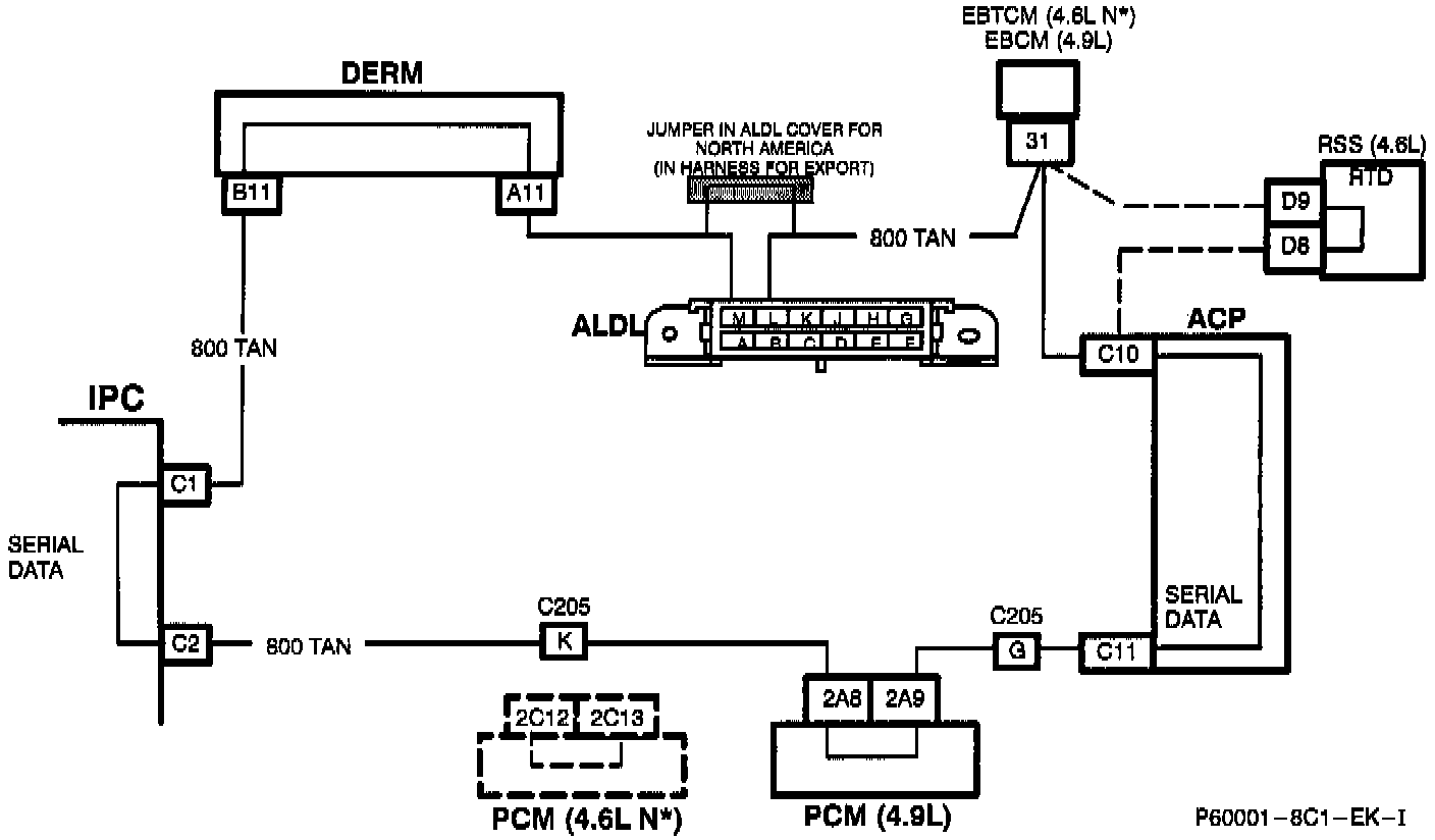 The use of the communication line allows for the separate computers to share information. Examples of this may be gage information sent from the Powertrain Control Module (PCM) to the Instrument Panel Cluster (IPC), A/C compressor requests sent from the Air Conditioning Programer (ACP) to the PCM, or Climate Control information sent between the IPC and ACP. This shared information architecture also provides for the on-board self-diagnostic capabilities.
