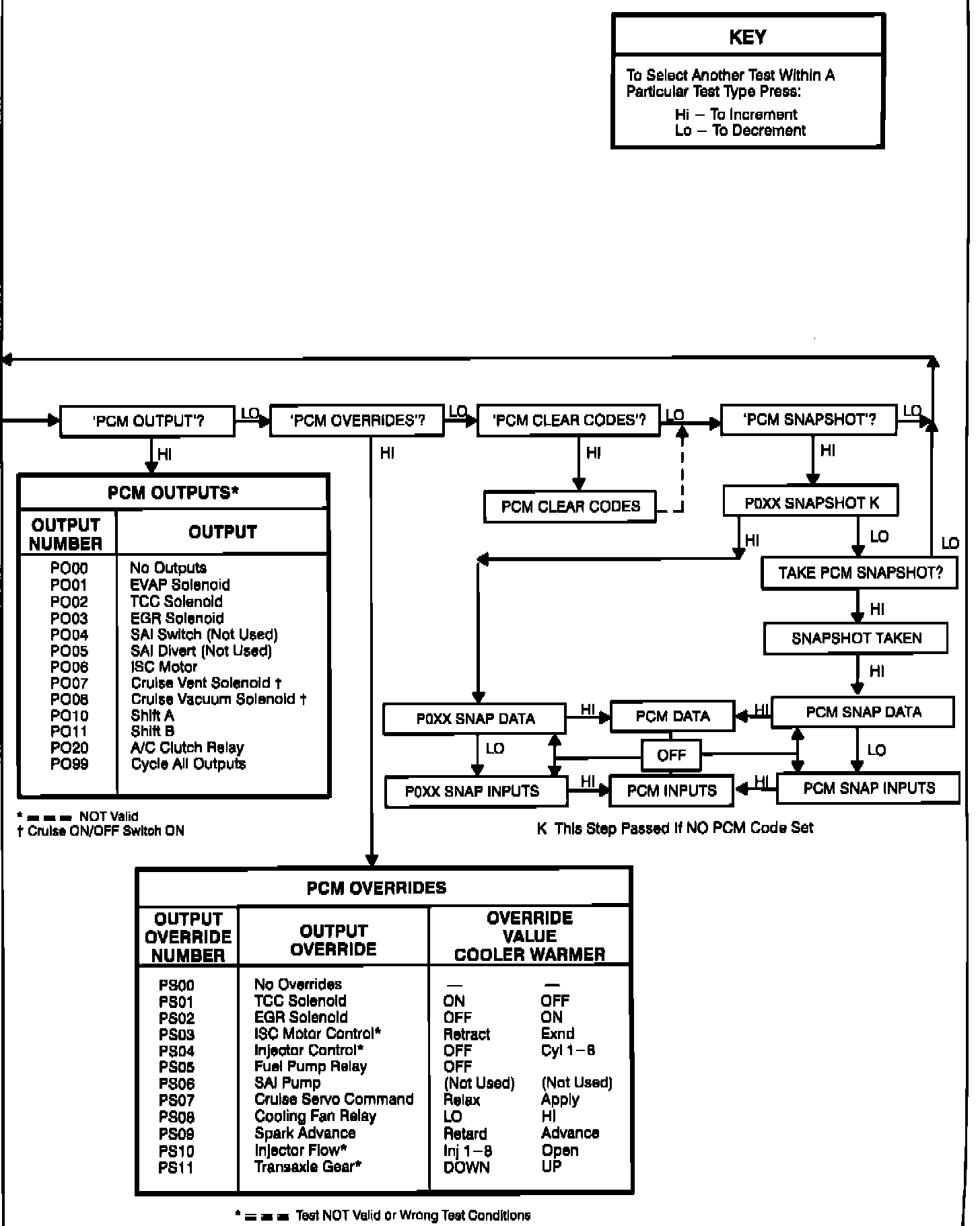 2. Press the "COOLER" button on the Climate Control Panel (CCP) to retract the Idle Speed Control (ISC) motor. This action will disengage the A/C compressor and command EGR "OFF". The CCP display will change from "50" to "00" as the ISC retracts.