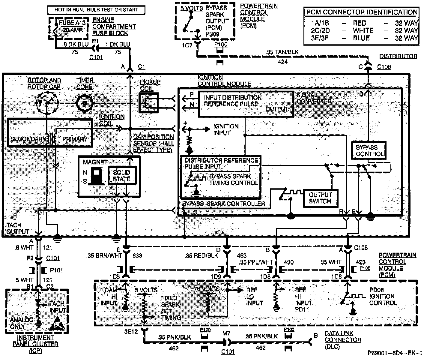 Ignition Control (IC) is PCM or Computer Controlled Ignition. Its purpose is for the PCM to control the spark which ignites the air/fuel mixture at a calculated crankshaft position for each cylinder of the engine.