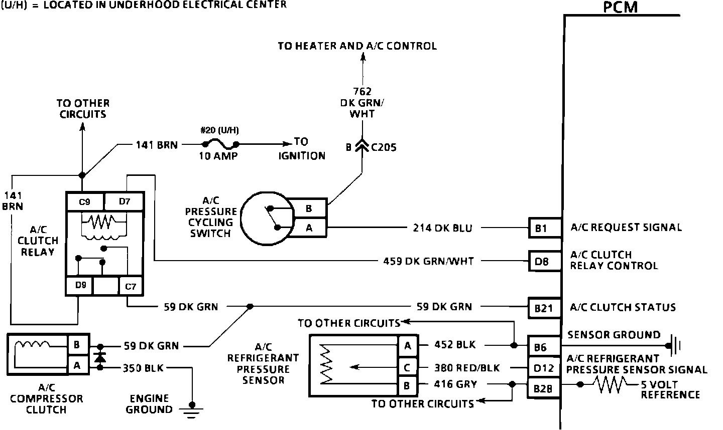 The A/C Status CKT 59, allows the PCM to compare A/C Request signals to actual A/C compressor clutch operation.