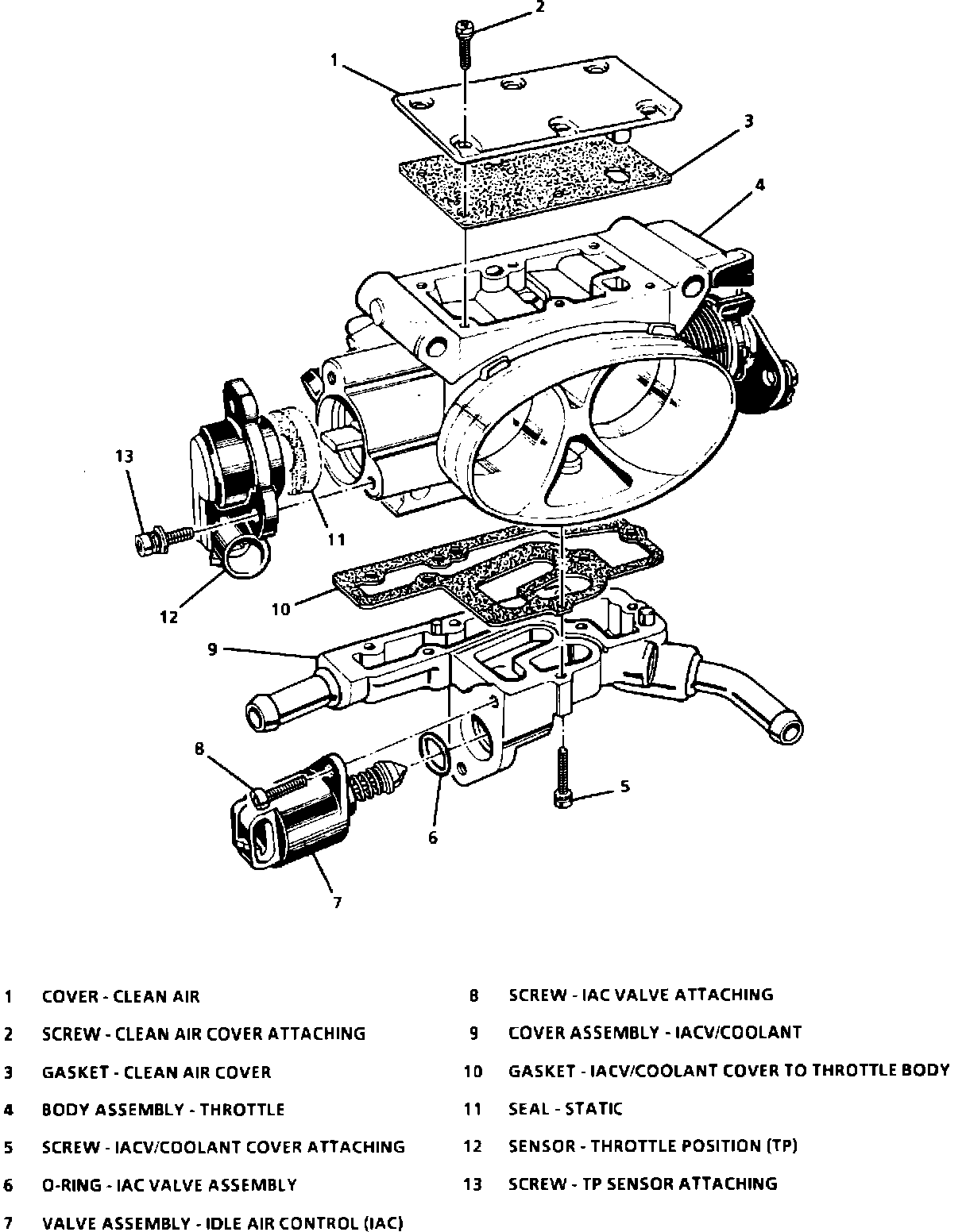 1. With throttle in closed position, install the throttle position sensor on the throttle body assembly, making sure TP sensor lever lines up with the TP sensor drive lever on the throttle shaft.