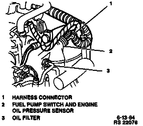 The fuel pump switch and engine oil pressure sensor is mounted on the rear of the engine on the oil filter adapter.