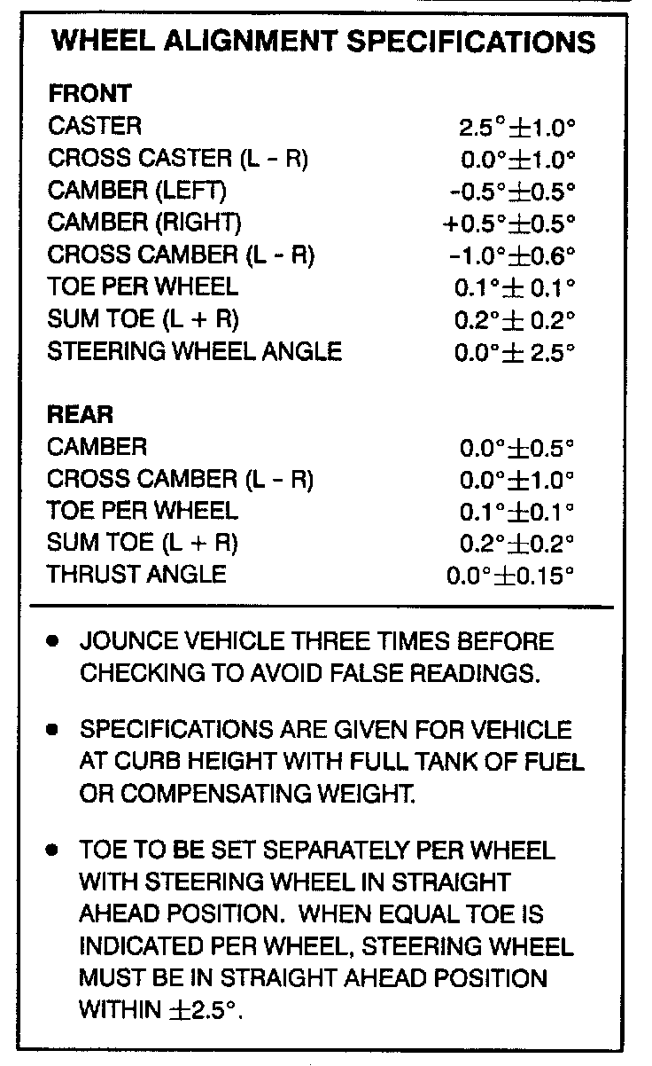 Rear Alignment Specifications