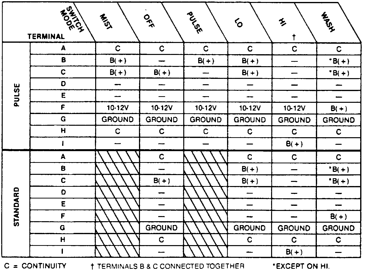 Wiper/Washer Switch Check Chart