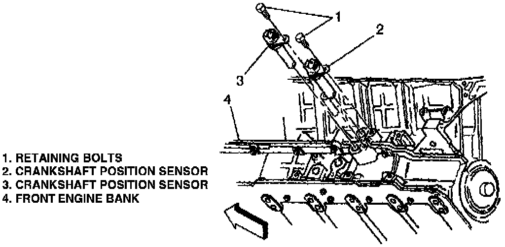 2. Remove the electrical connector at the crank sensor located on the front engine bank.