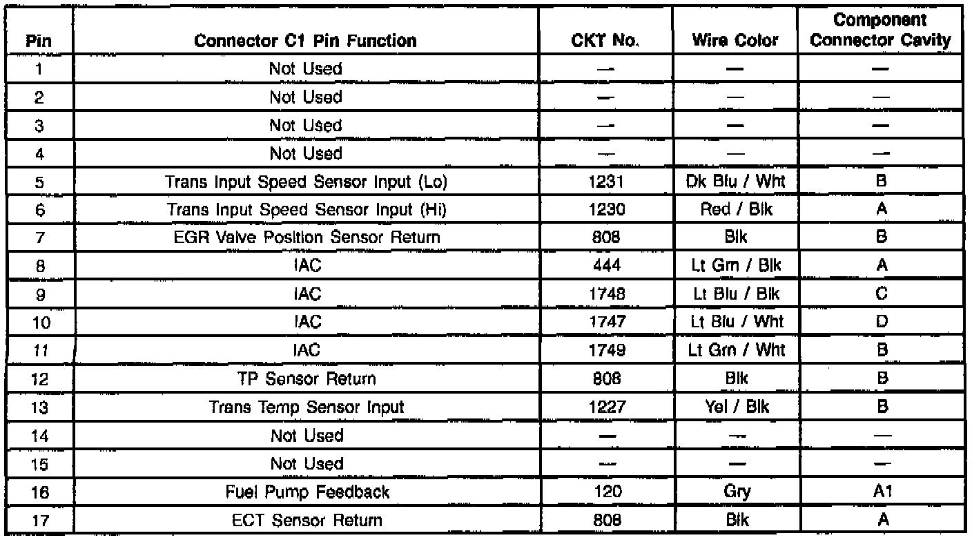 PCM Connector C1 Pin Functions - Part 2 Of 3: