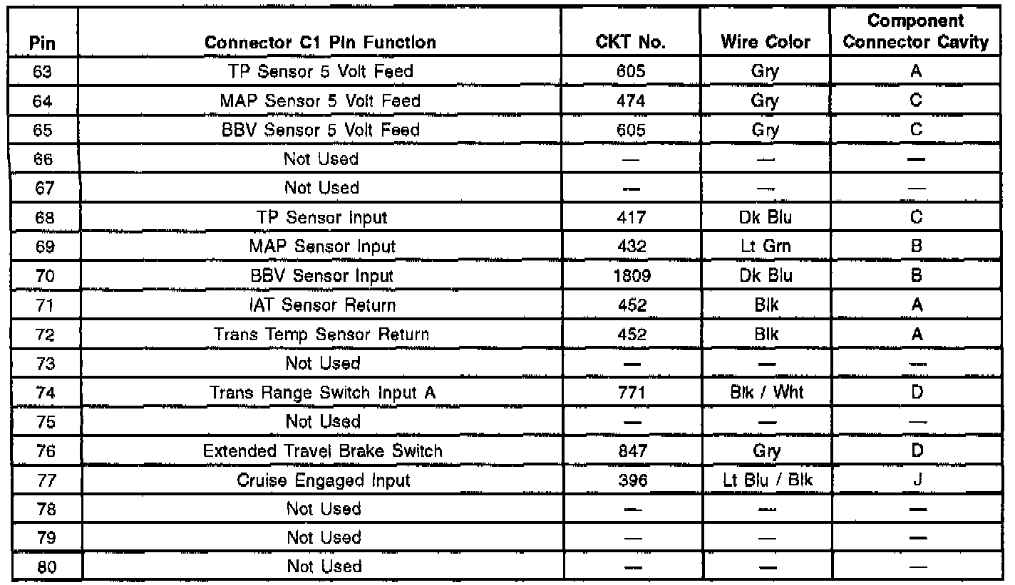 PCM Connector C1 Pin Functions - Part 3 Of 3: