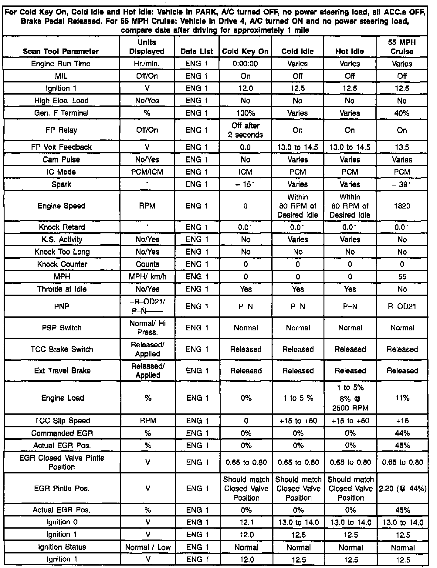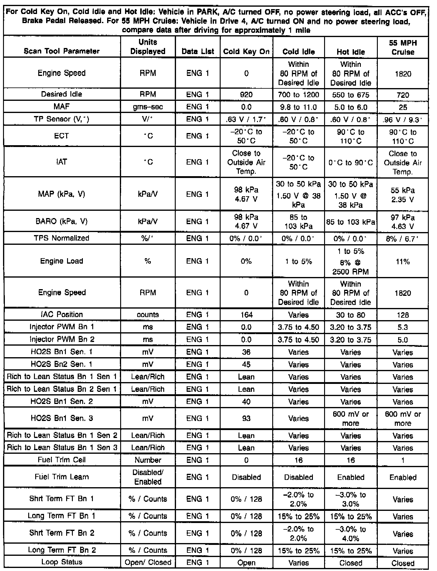 Engine 1 Data Values - Part 1 Of 2:
