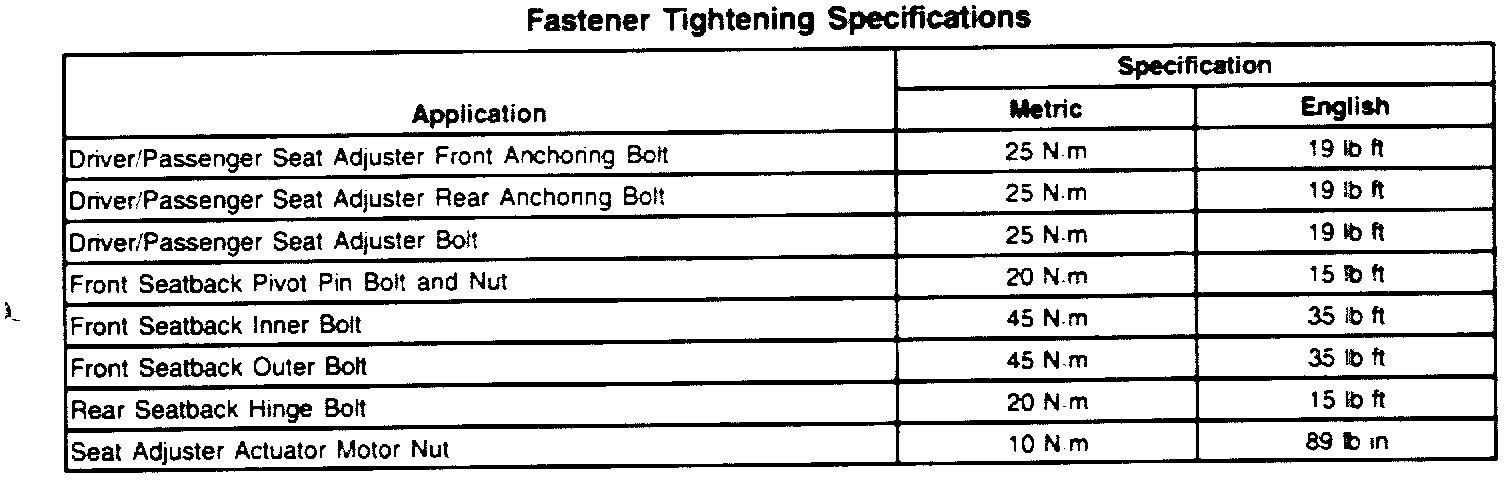 Fastener Tightening Specifications: