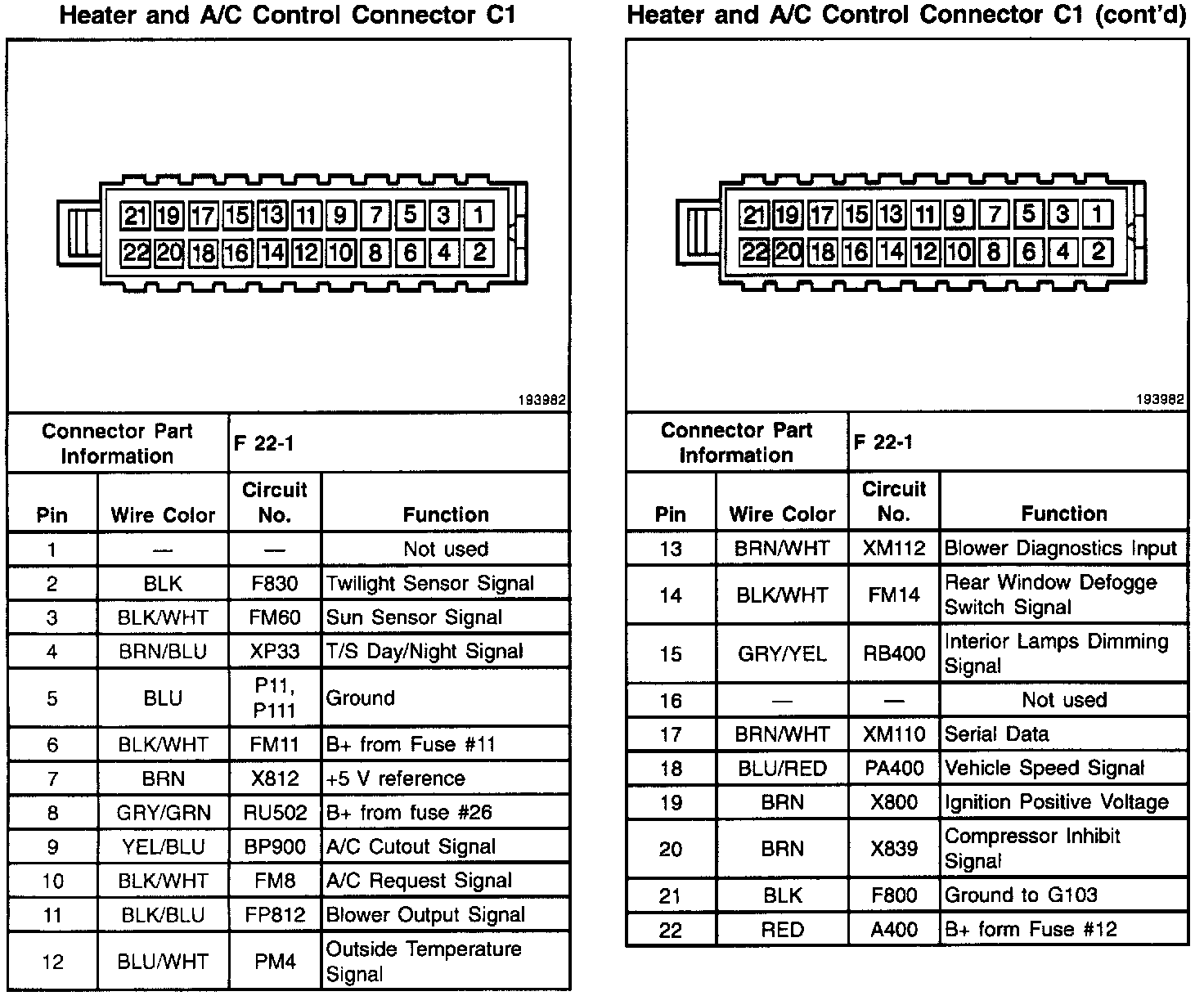 Heater And A/C Control Connector: