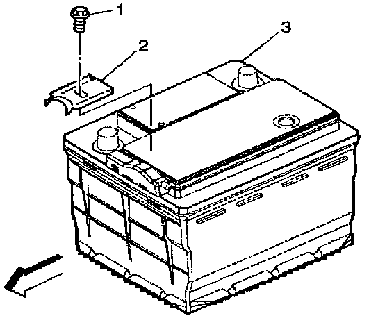 5. Remove the battery hold down retainer bolt (1).