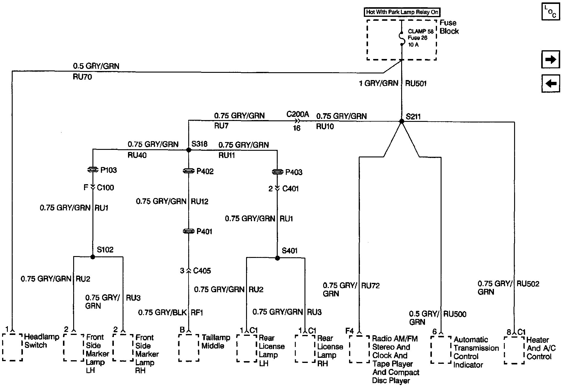 Fuse Block Details Schematics: HDLP Switch, RH Exterior LPS, Radio And Heater And A/C Control: