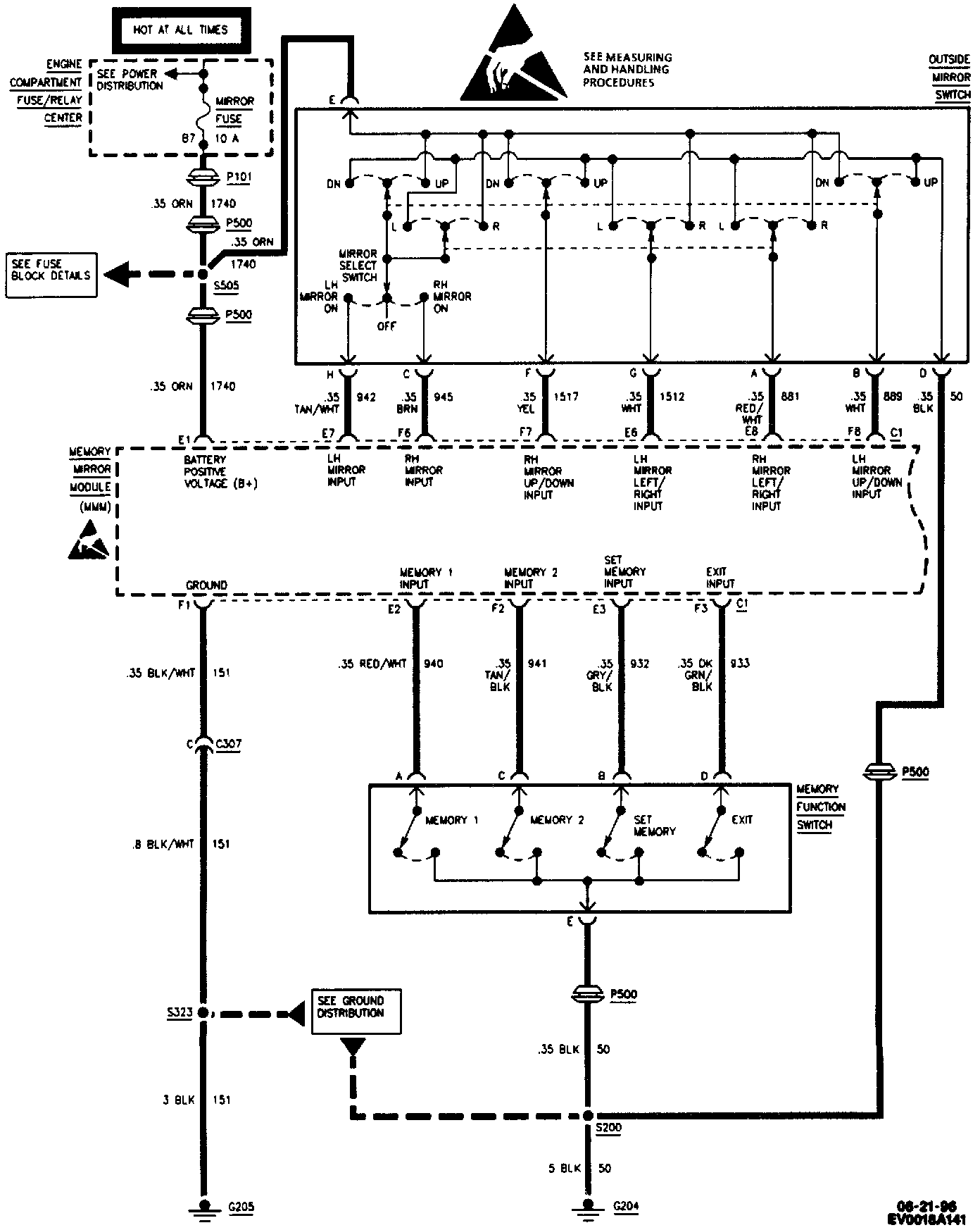 Power Seat/Mirrors: Memory (Mirror Switch/Memory Function Switch):