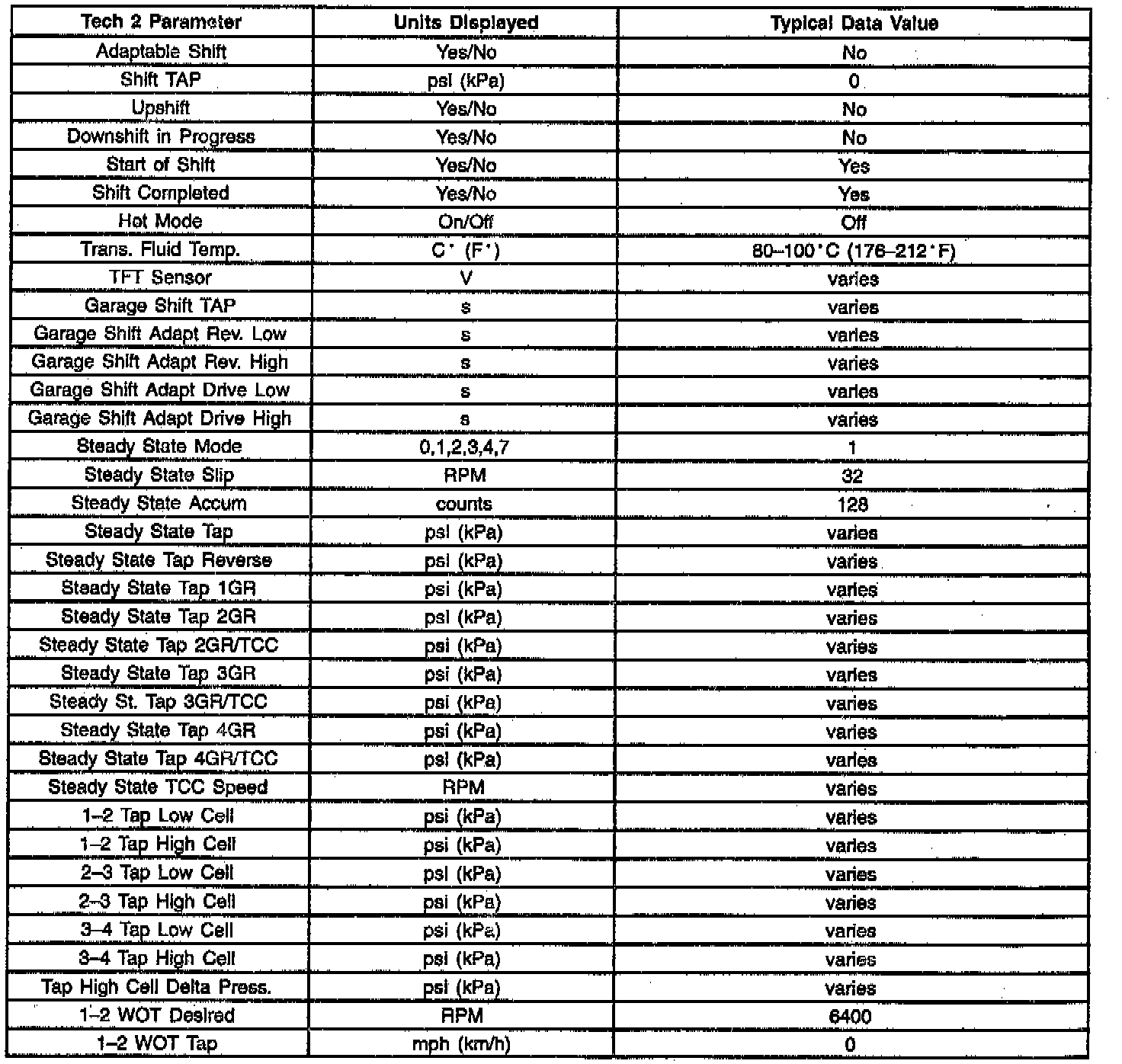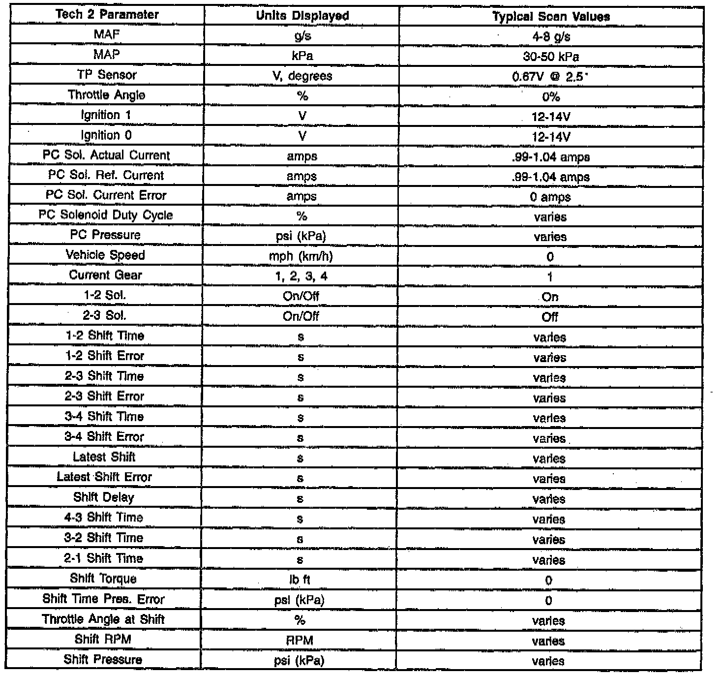 Tech 2 Transmission Data 1 Value Examples Part 2 Of 2: