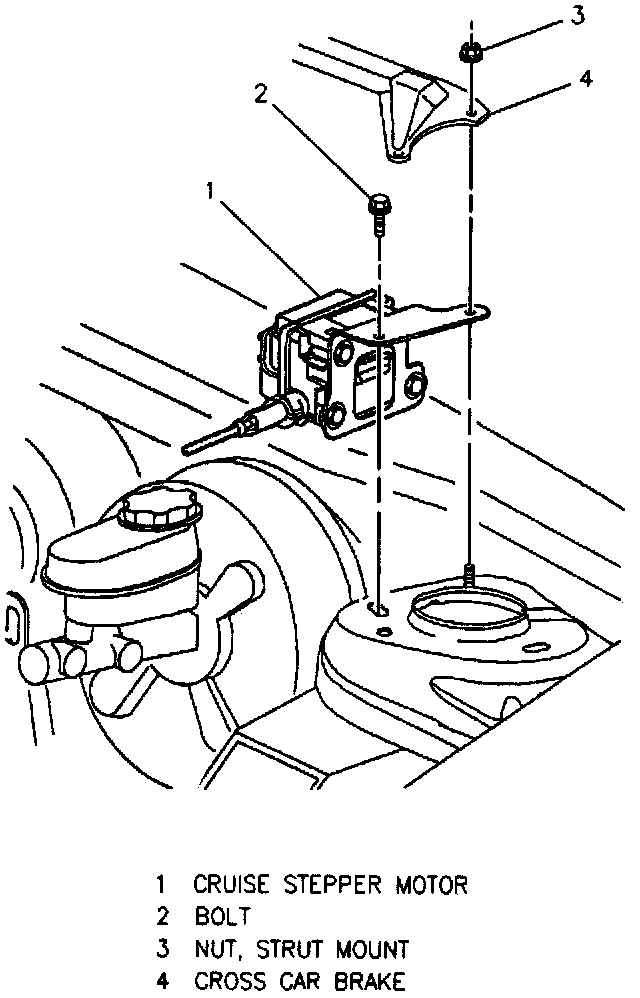 The cruise control module assembly is mounted on the left shock tower in the engine compartment.