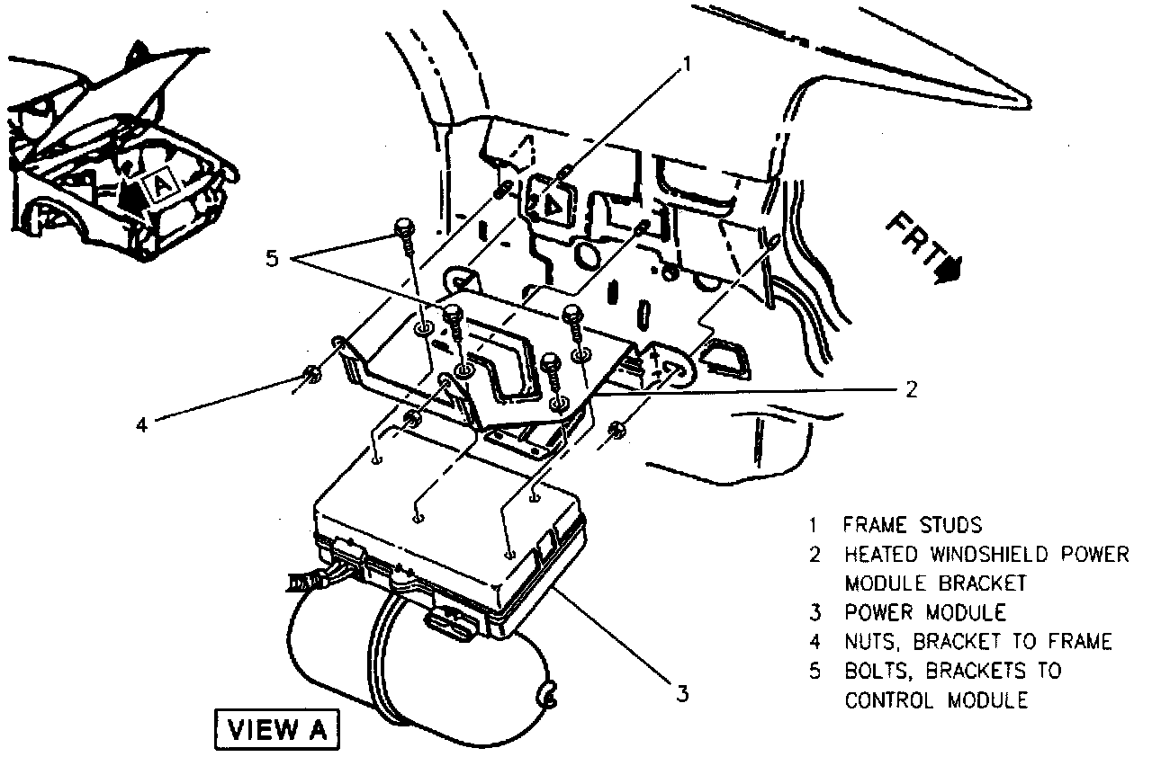 2. Four nuts securing the heated windshield bracket from frame stud.