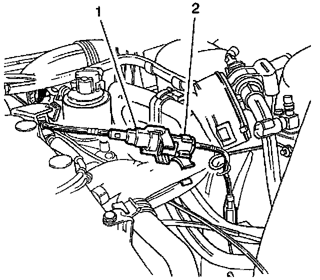 7. Depress the cable lugs in order to remove the cruise control cable housing from the bracket.