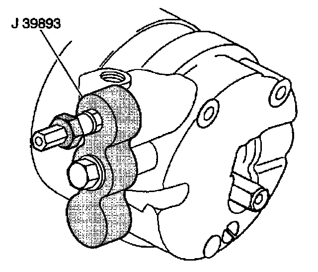 1. With the sealing washers in place, install the J 39893 on the rear head of the compressor.