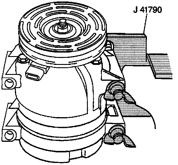 4. Install the 4 Inch through bolts and washers from the J 42138 tool kit into the J 33025 and attach them to the compressor mounting bosses.