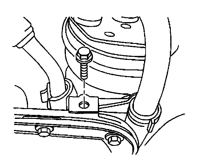 8. Remove the compressor hose to oil pan bolt.
