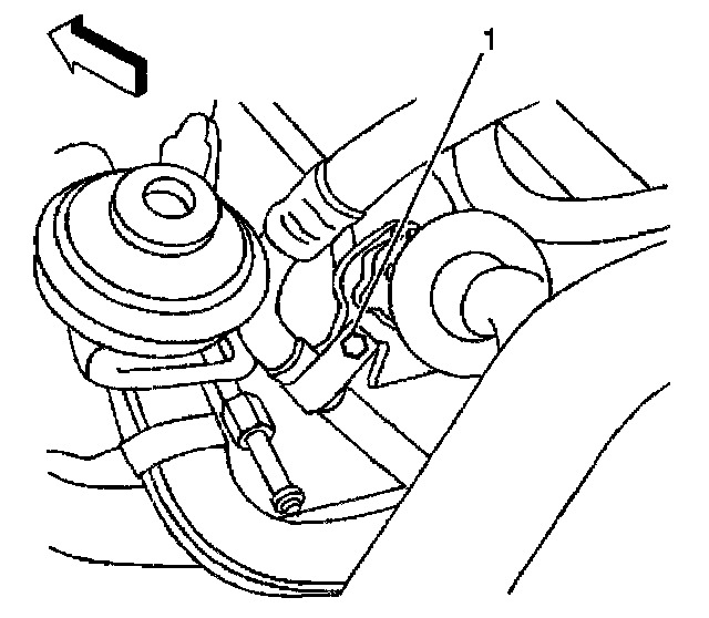 8. Install the compressor hose clamp to air pipe bracket bolt (1).