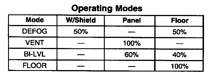 The Bi-Level (6) control function provides outside air flow to the panel with a split to the floor outlet.