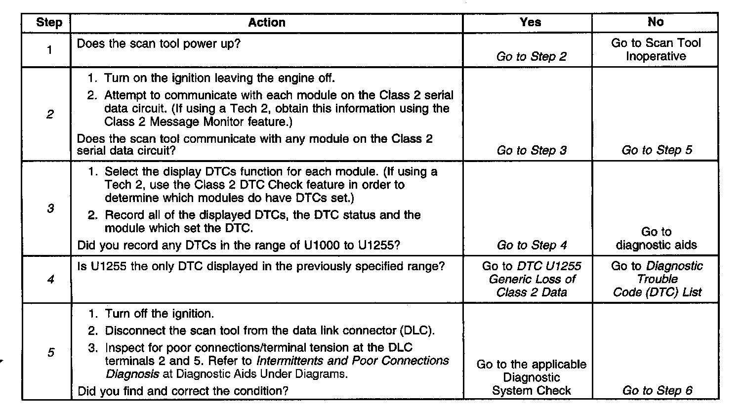 2. A partial malfunction in the Class 2 serial data circuit uses a different procedure from a total malfunction of the Class 2 serial data circuit.