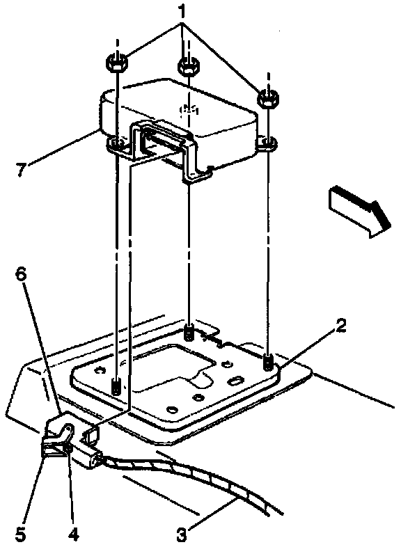 1. Install the SDM to the vehicle. Ensure that the arrow on the SDM points toward the front of the vehicle.