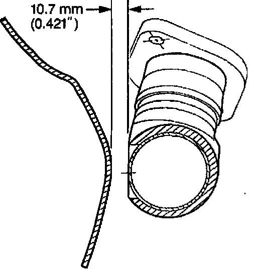 Exhaust pipe clearances are measured at the points and with the tolerances shown.