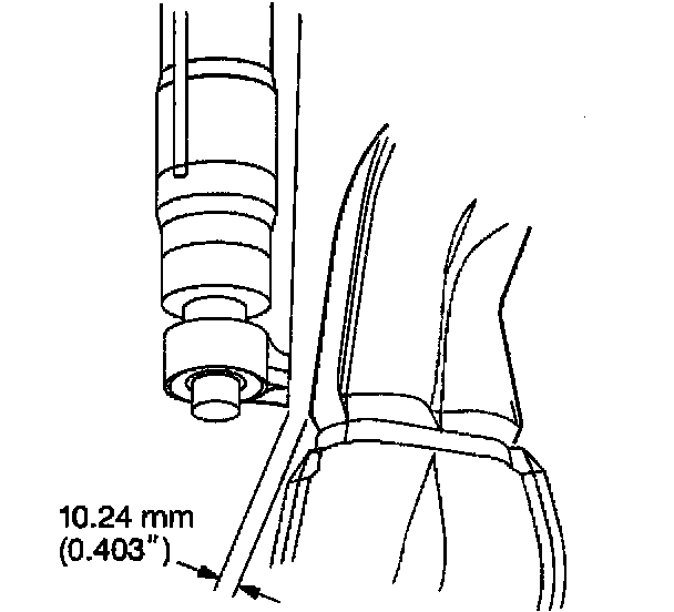 The catalytic converter to the pitman arm clearance is measured at the point and the tolerance shown.