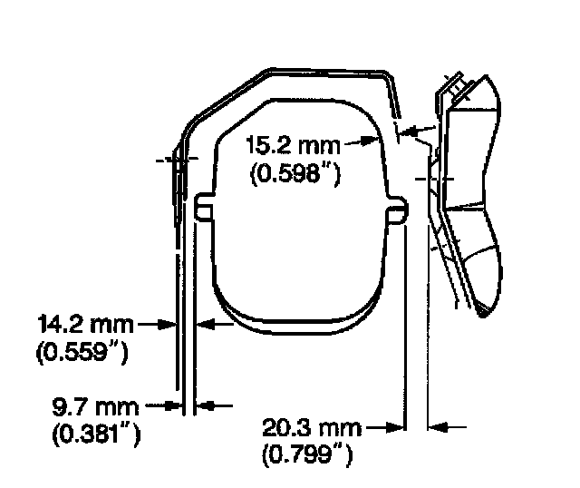 Catalytic converter clearances are measured at the points and with the tolerances shown.