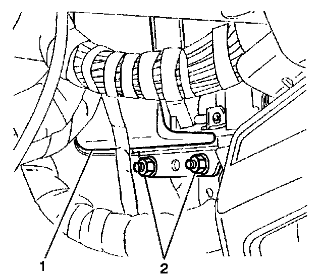 ^ Tighten the transmission control module nuts (2) until fully seated and not stripped.