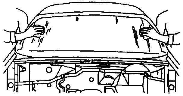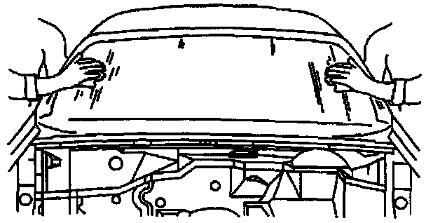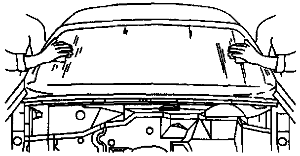 13. Install the bottom windshield reveal molding into the reveal molding retainers last because the air inlet grille panels fasten under the reveal molding.