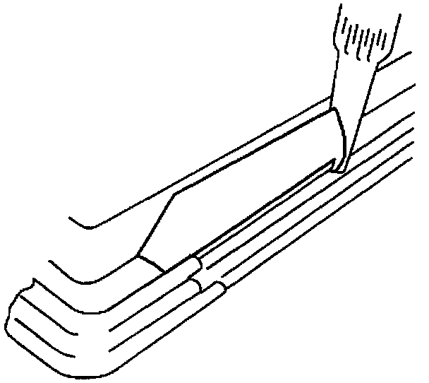 4. After repairing the opening as indicated, shake the pinchweld primer # 3 (black) well, and using a new dauber, apply to the primed surface of the flange in the bonding area. Allow to dry for 10 minutes.