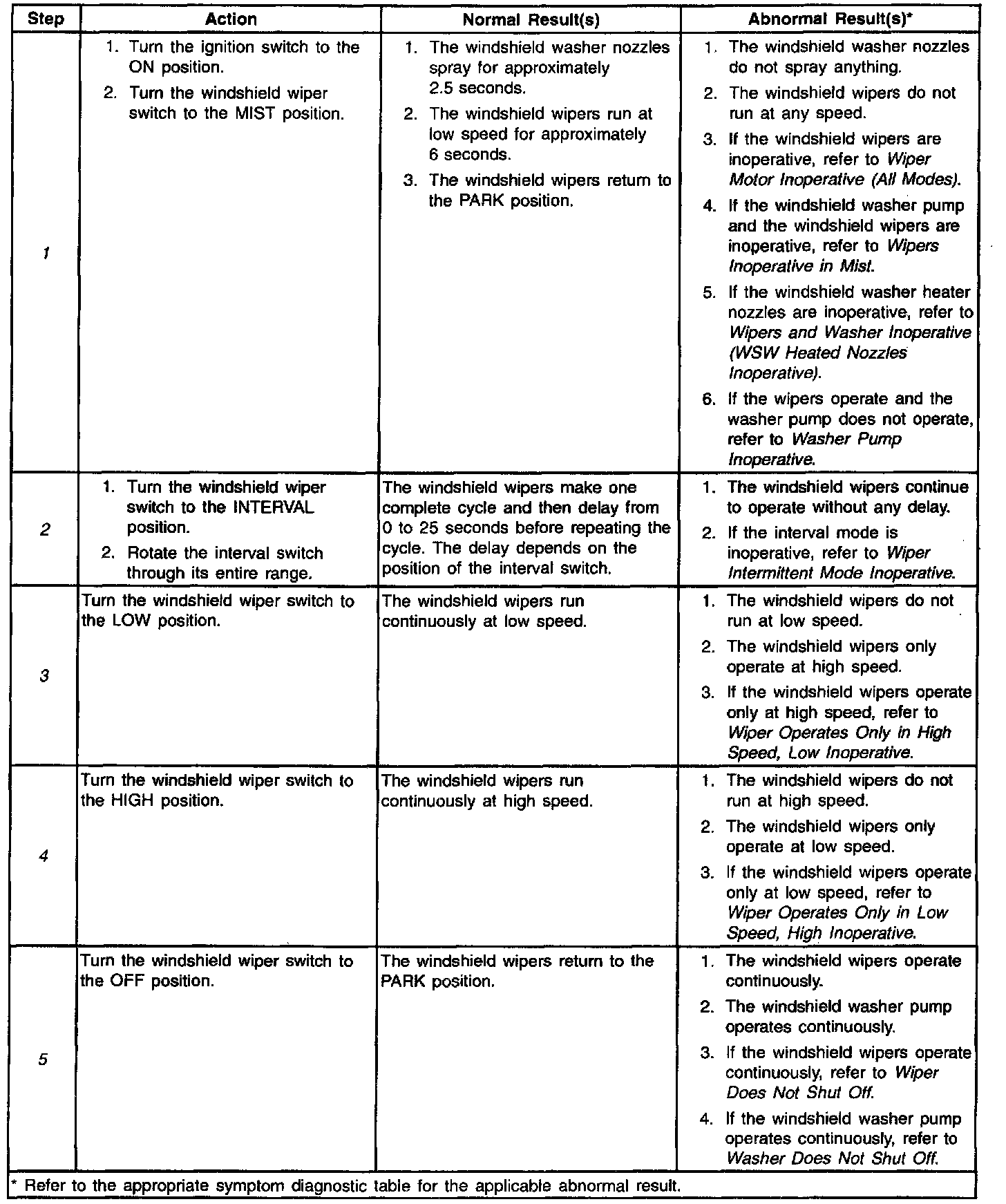 Wiper/Washer System Check: