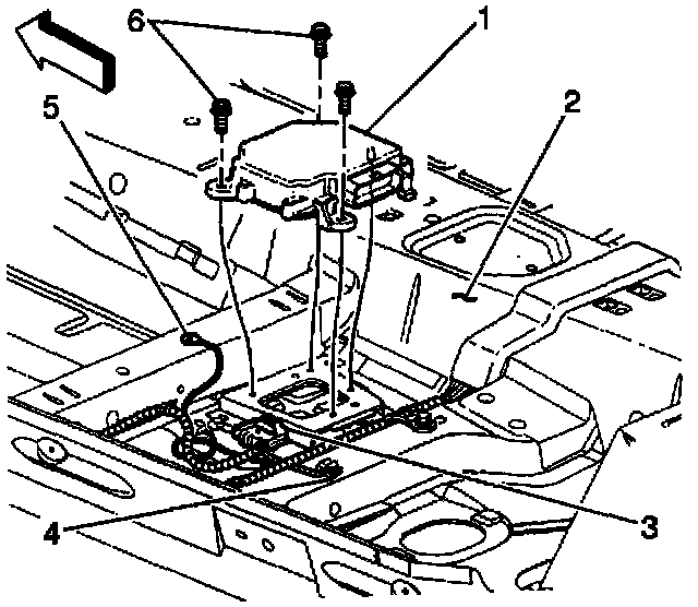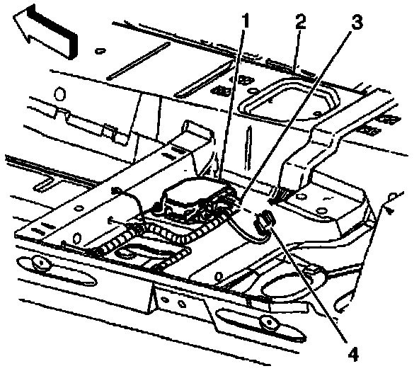 1. Install the SDM (1) to the floor sheetmetal (2).