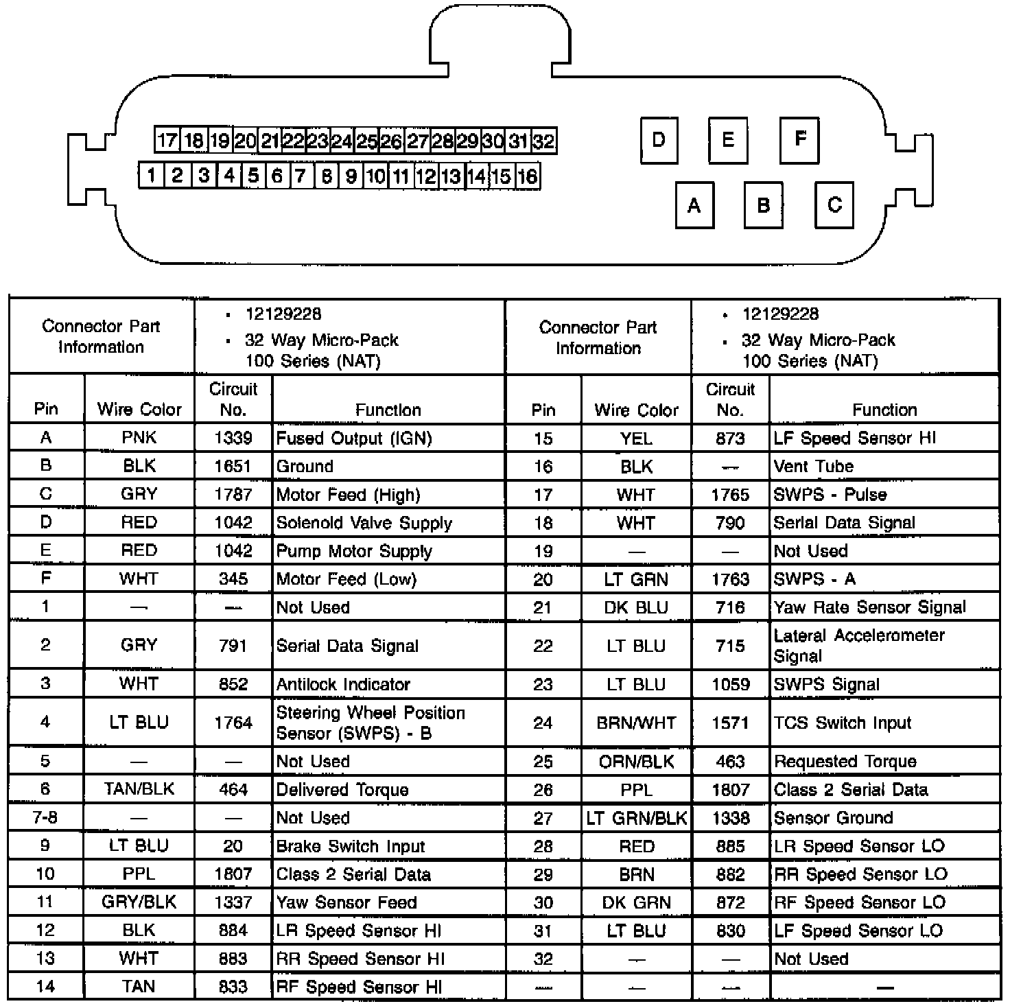 Electronic Brake/Traction Control Module (EBTCM) Connector: