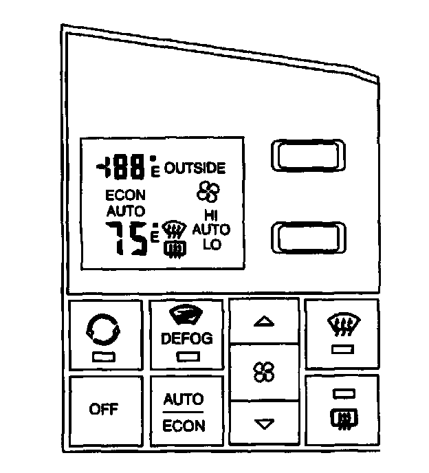 These buttons on the climate control panel (CCP) will control fan speed operation. If the AUTO button is selected, the blower fan will operate automatically based on the various inputs to the system.