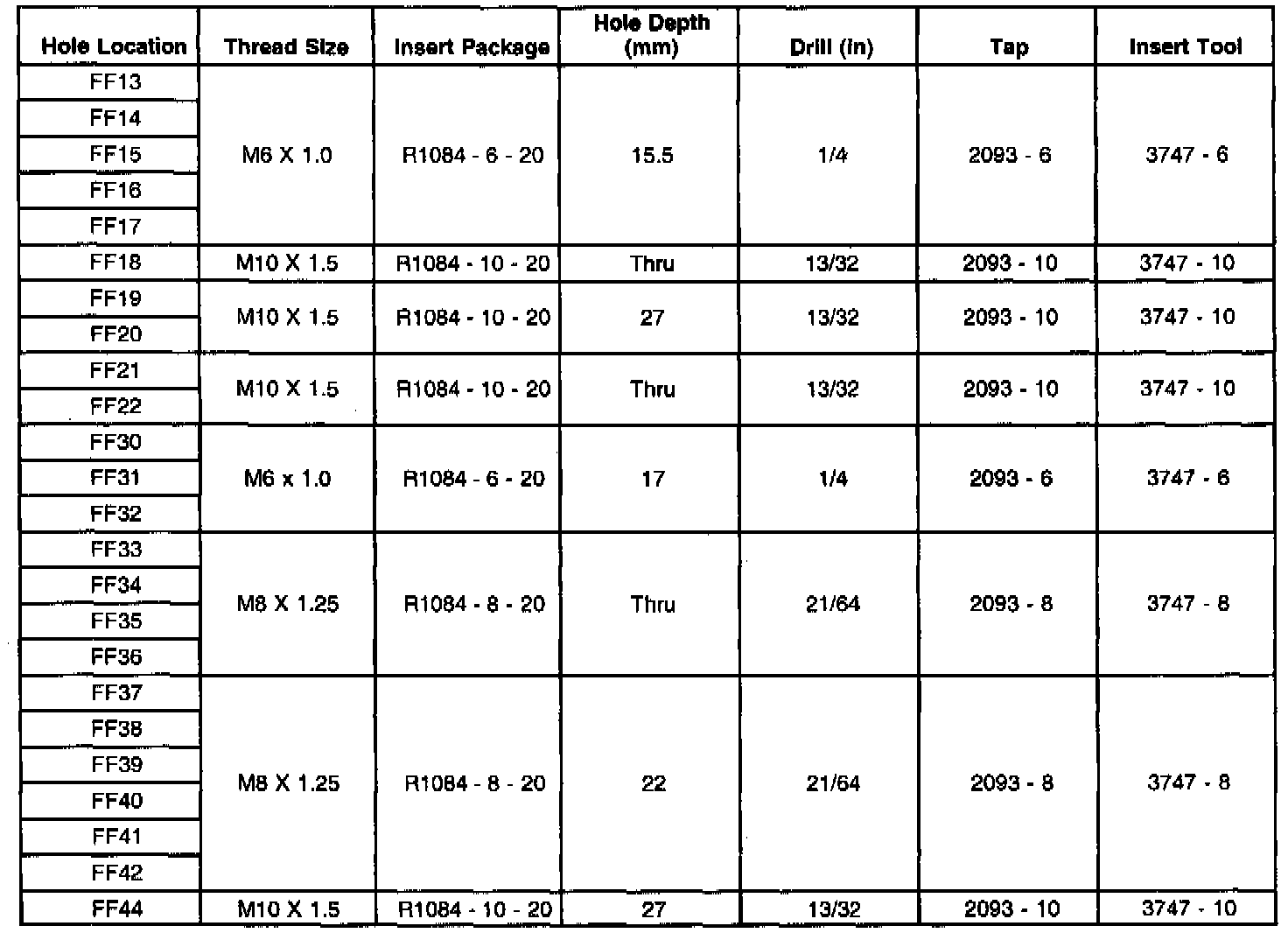 Thread Repair Specifications