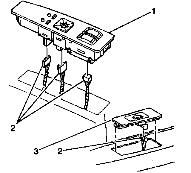 3. Install the switch plate (1,3) by evenly setting the plate into the trim panel.