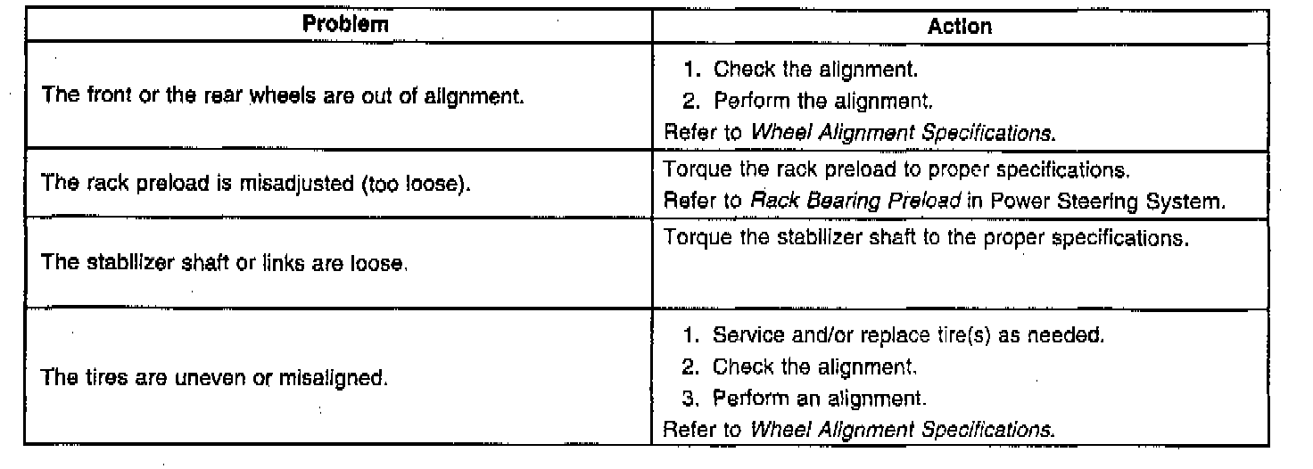 Wander or Poor Steering Stability