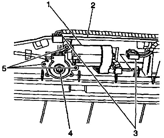3. Remove the fasteners (5) attaching the sunroof motor (1) to the sunroof module (2).