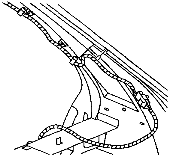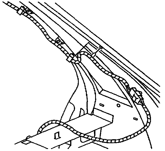 6. Route the wiring harness along the rear pillar and secure it into the retaining clips.
