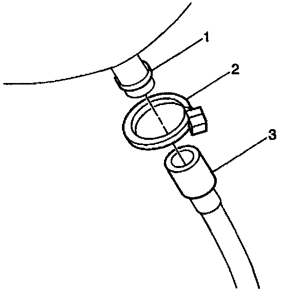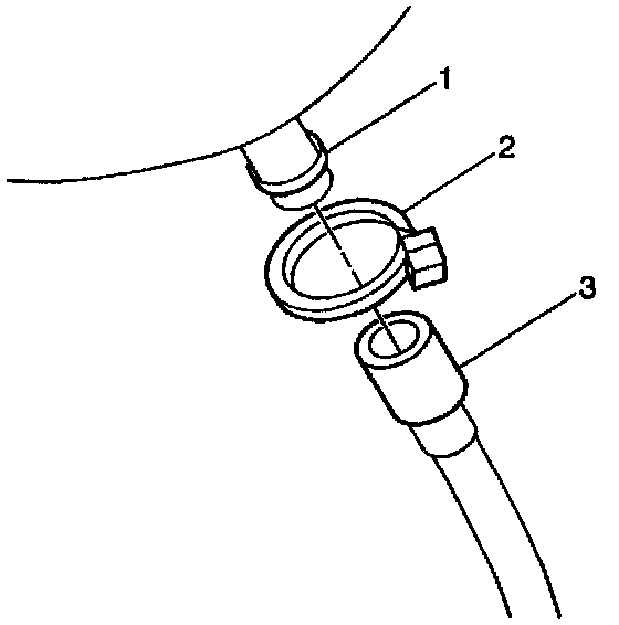4. Connect the four drain hoses (3) and install new tie wraps (2).