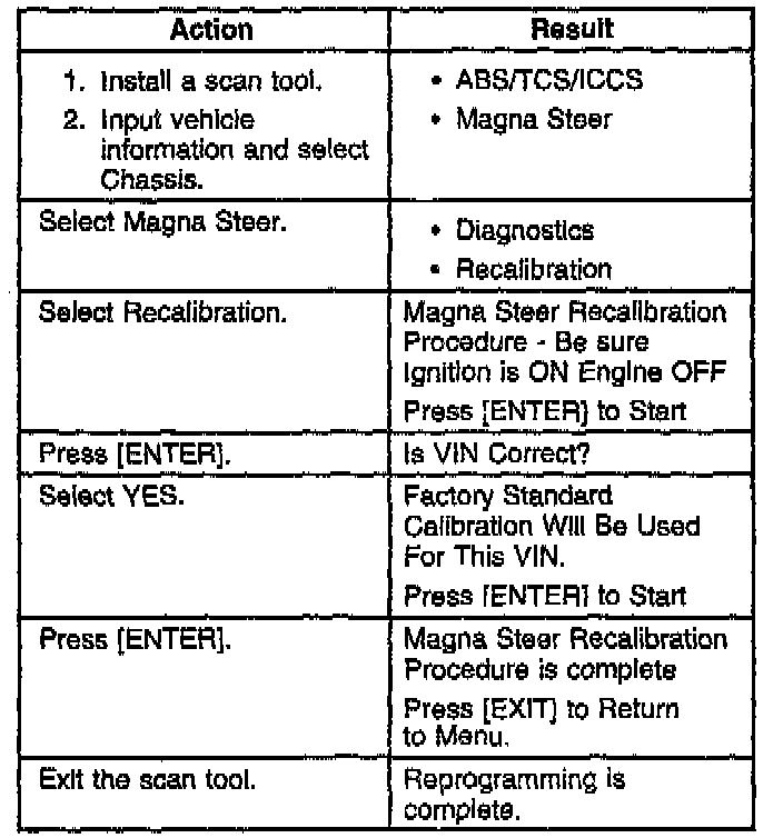 system has only one response mode. Use a Scan Tool and the following table in order to recalibrate the Variable Effort Steering system