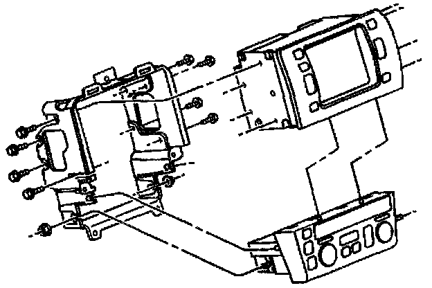3. Remove the heater and A/C control and navigation display module bracket fasteners.